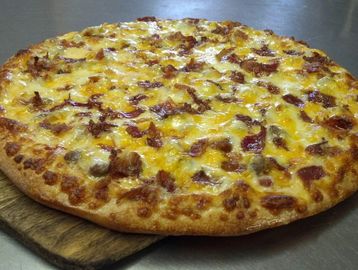Pepperoni, Italian Sausage, Beef, Canadian Bacon, Crisp Bacon, Cheese.