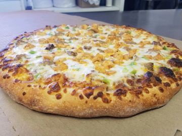 BBQ Sauce, Italian Sausage, Green Peppers, Onions, Chicken, Cheese. ( on request Pineapple, Tomatoes, Bacon)